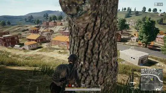 从上图能看出来虽然这树根相对于水塔来说视野不够好,但却拉近了射击距离。要知道,在不充分的搜索之后,倍镜这种东西不是谁都有的,所以在这有掩体有视野的树根下,埋伏好之后再突然跳出来还是不错的。但需要提醒大家的是,这里并不是一个能固守的地点,如果开枪之后短时间内无法取得战果,那最好还是移动到山顶比较保险,毕竟敌人是有很多的。