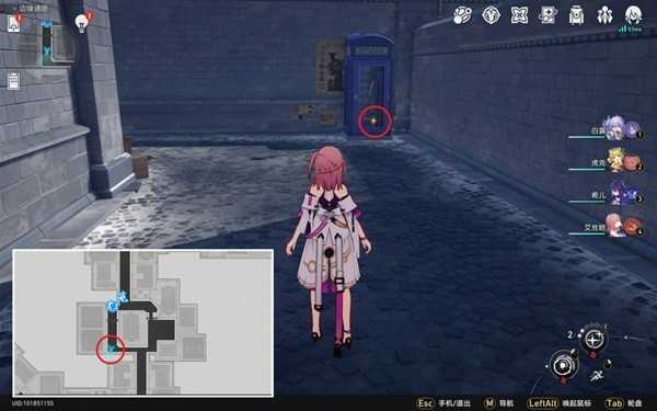 3,来到标记位置,调查电话亭,即可获得20冬城盾