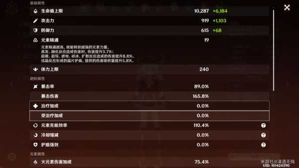 其中,攻击加成为1103÷919=120%,暴击89%,爆伤165.8%。