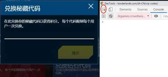 2.图上红圈按钮,选中兑换框,Console确保JS context跟图上一样为2kgames.*, 复制以下代码到控制台中执行, 一秒领取所有积分(注意这里并不是全部代码,有需要可以自行研究增加替换)几个兑换的CID: