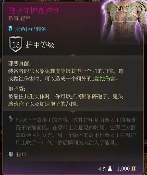 这个虽然胸甲说是可以扩展加速孢子的范围,但实际上你不穿这件胸甲就根本没有这个孢子可以用。这里写的是每长休一次,但实际上你只要随便穿/脱一件装备就刷新了,而且一场战斗开一次加速孢子就行,实际上根本就是无限用。