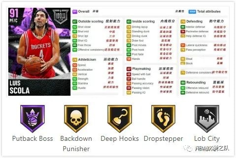 有“钻石”之称的斯科拉可是中国球迷的老熟人了,这张卡可以打PF和C,身高2米06,而且有一定的三分能力(79),同样是一个空间型的内线。但其它属性乏善可陈,双速只有50多,而且防守较差,唯一紫章是补篮之王。