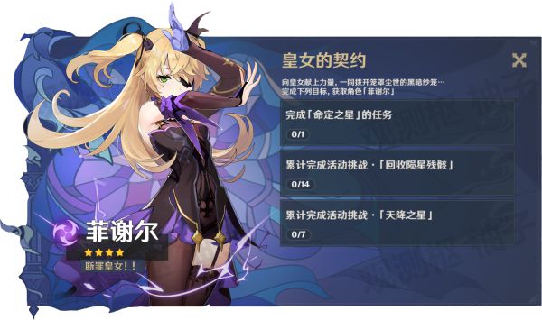 活动特殊任务【皇女的契约】在天降之星开启之后即可完成。完成「命定之星」的任务只需要旅行者在进入活动界面的时候将罗盘对齐即可。旅行者之后完成7次天降之星的回收即可做完第三个任务(纪行需要旅行者完成6次回收挑战即可获得纪行经验奖励)。