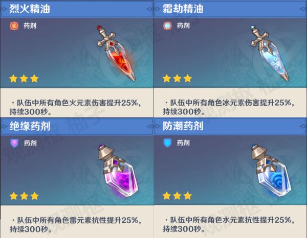 元素精油:精油能够提升角色的元素伤害,提高魔物的击杀效率。