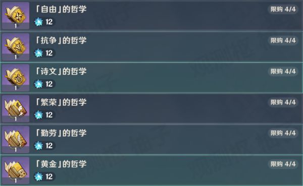 或者使用12「熄星精粹」兑换一本【哲学】稀有度的技能书,每种类型共能兑换4本。兑换全部的【哲学】技能书需要288个「熄星精粹」。