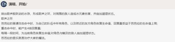 芭芭拉虽然伤害都由水元素伤害构成,但是不需要输出,作为奶妈治疗的加成对于芭芭拉就显得格外重要