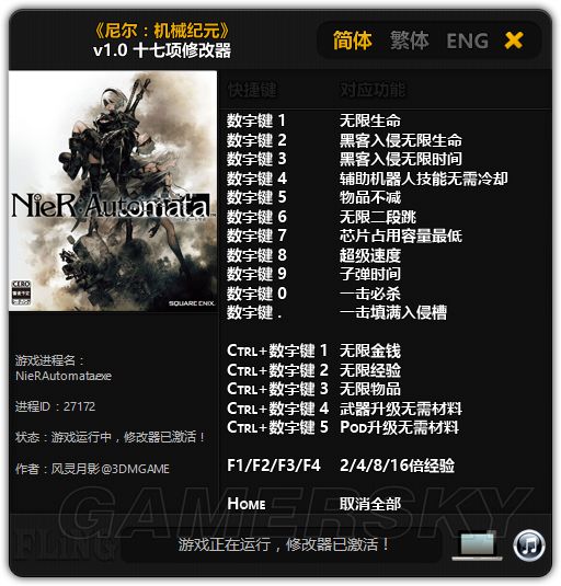 简体、繁体、English,可以切换语言 (切换语言后修改器将把该语言设置为默认语言)