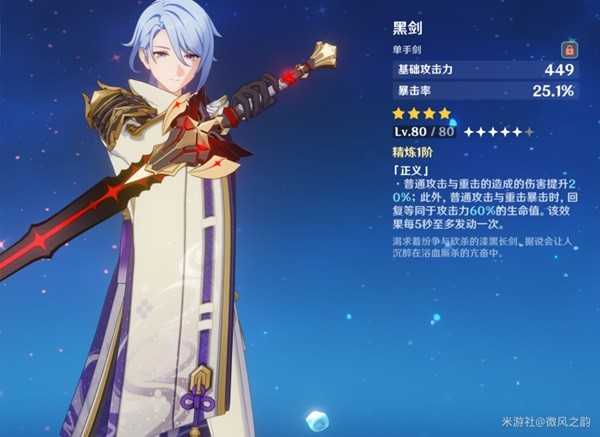 四星的话,纪行武器,也就是我们常说的大月卡武器黑剑。是个不错的选择。该武器同样可以提供暴击率的主词条,且效果可以提升普通攻击伤害。