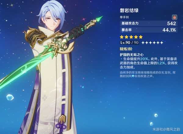 其次,我们的绿剑也是一个不错的选择。该武器虽然没有专武给绫人提供的效果好,但好在效果和暴击率神里绫人都能吃到,队伍中配合双水共鸣能提升更多。