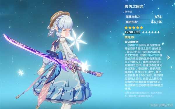 我们的绫人还可以选择其妹妹绫华的武器。雾切效果绫人也能吃到不少,不过该武器提供的主词条是暴击伤害,因此我们的圣遗物头部选择就要偏向于暴击率些。