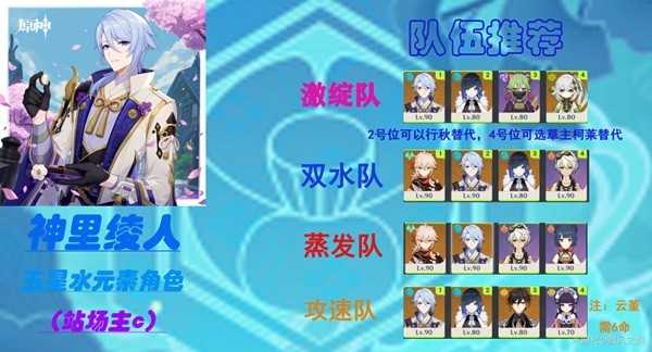 神里绫人是一位水元素站场型持续输出角色。通过开启元素战技后对敌方进行多次强化攻击。