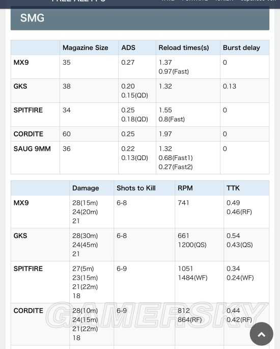 武器伤害/换弹/TTK时间等数据,TTK只计算最大伤害的弊敌时间
