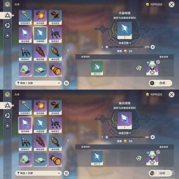 水晶棱晶、偏光棱晶两种材料可以通过炼金台合成