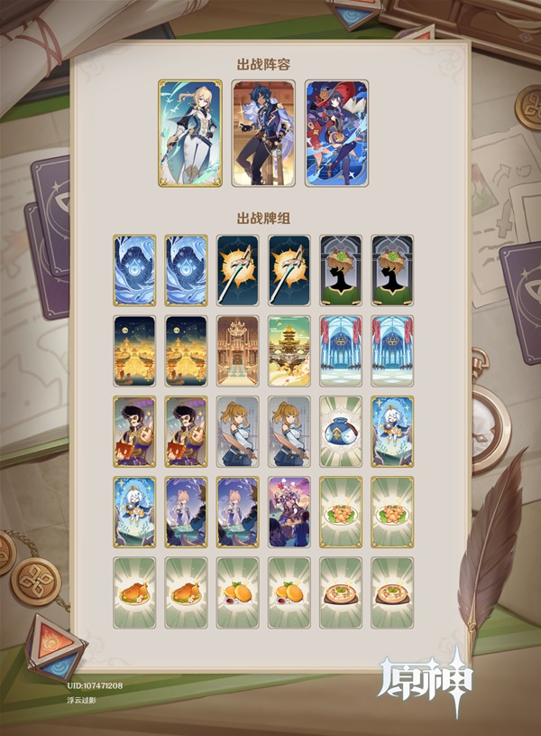 因为这套牌的操作对于骰子的要求有点高,所以图书馆和小派蒙这种改骰子的牌就很重要了,三件套至少有一件的情况下可以考虑留它们