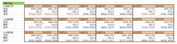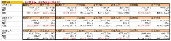 可以看到在135速,理论出伤最高的是攻攻风攻+公司套的组合。