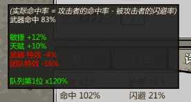 这里有个一家之言,游戏是有站位加成的,具体自己去看 这里就说1号位置 命中120% 闪避则只有60%