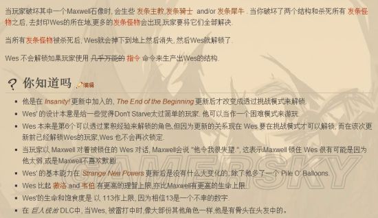 当玩家破坏其中一个Maxwell石像时, 会出现 发条主教,发条骑士 and/or 发条犀牛 . 当你破坏了两个石像后,可以不用管出现的怪物,,直接去封印Wes的所在地,只要杀光wes身边出现的怪兽, Wes就会掉下到地上然后消失, 然后Wes就解锁了。