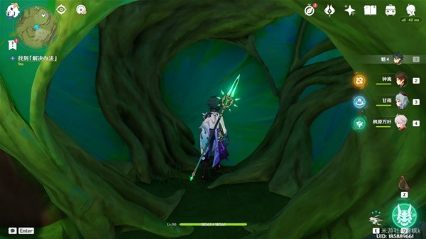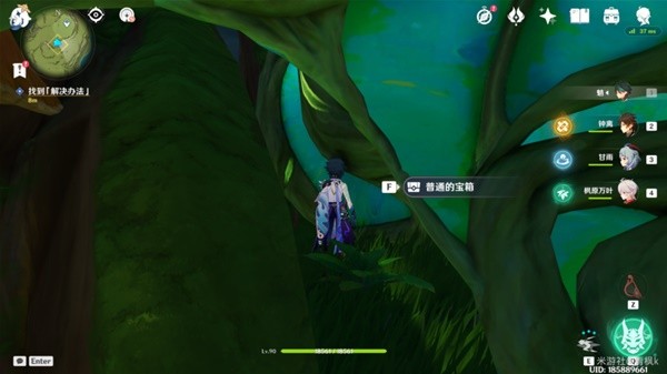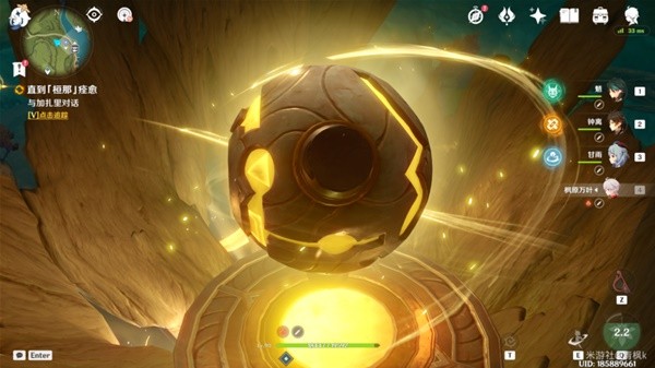 我魈可以直接从缝里走出来...然后这个位置有个普通宝箱,打三次就可以进来开宝箱了,开完宝箱打一次从这个球里出来
