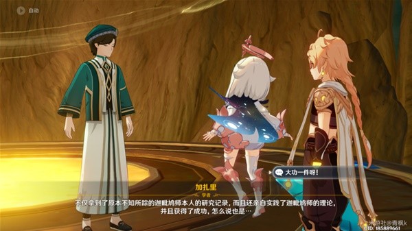 对话后我们回到之前遗迹巨像的内部找到加扎里,他因梦寐以求的论文被我们这么轻易的拿到手而抓狂