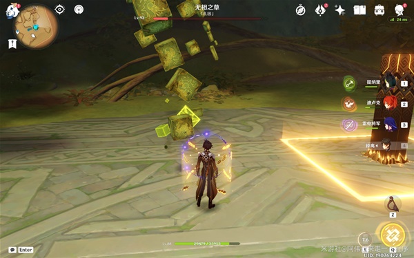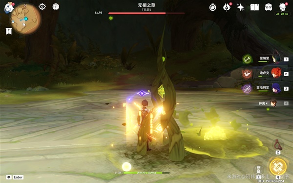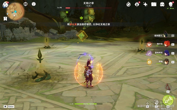 雷元素角色可以快速净化无相之草濒死状态的疗愈草芯