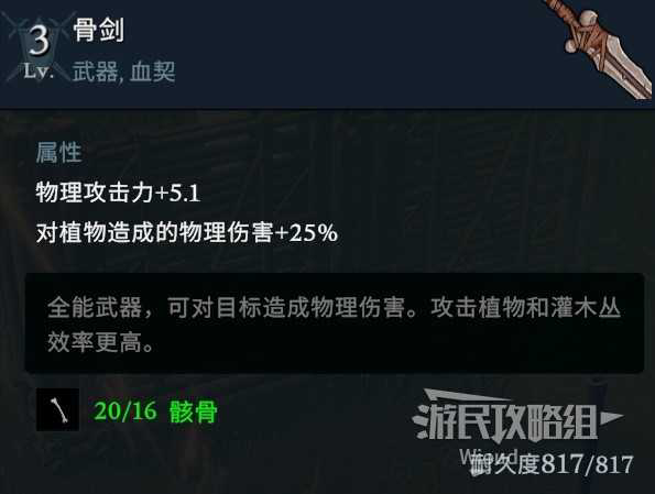 (注:虽然类比上有剑与斧之分,但骨制武器的属性完全一致。)