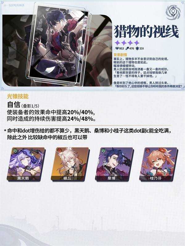 《崩坏星穹铁道》2.4下半版本将会上线椒丘及其专属光锥,那么椒丘专属光锥的强度究竟如何呢?下面请看由“一包好次的辣条”为大家带来的《崩坏星穹铁道》2.4下半UP光锥前瞻分析,含椒丘专属光锥解析,希望可以帮助到大家。