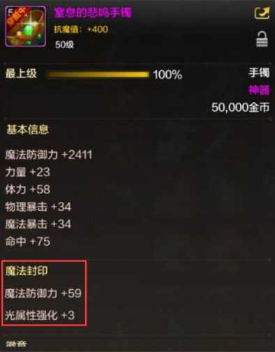 可以在打造-制作-装备-远古栏当中使用【强大的怨念】将装备升级为50级的神器级首饰【窒息的悲鸣】系列装备,使其原有属性得到加强,非常适合作为勇士们的过渡装备。