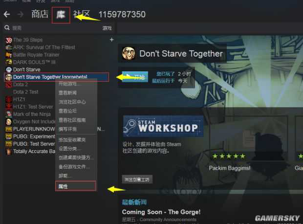 设置方法:Steam-库-游戏-饥荒联机版右键属性-测试-gorgebeta