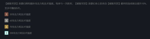 破败薇恩这套阵容强势点主要在这套版本冷门,其次新版本破败羁绊应该算是一个比较冷门强势的阵容,6破败羁绊的加成下,薇恩开局就能够有70点法强,开局薇恩的伤害就能够直接拉满。