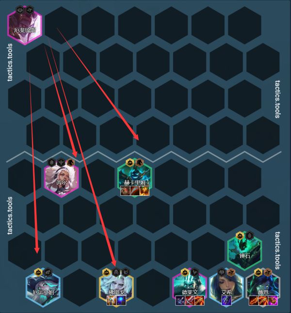 1.这套阵容看着很强,但是有一个致命的弱点就是薇恩没有任何恢复能力!主要的护盾加持主要只有一个芮尔的技能,因此芮尔对于阵容来说至关重要!