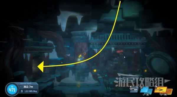 进入冰河通道后,往下游到正下方的二层,进入左侧的门。