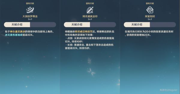 2命则是延长元素爆发的存在时间,并且为领域内的角色提升冰元素暴伤,需要注意的是,甘雨和神里绫华的元素爆发为快照机制(锁面板),故应先释放申鹤的元素爆发;