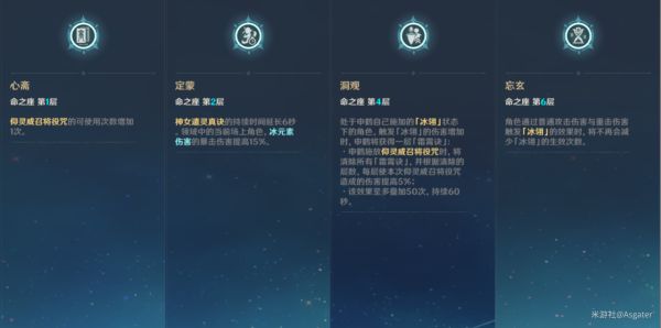1命可以增加1次元素战技的释放次数,但是值的注意的是,冰翎无法叠加,即每次释放元素战技,如果还有之前未被消耗的冰翎则会重置;