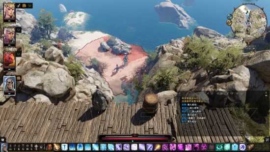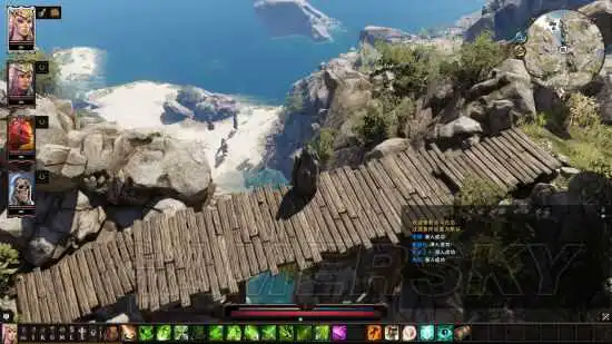 弓手跑山上的吊桥位置,其他三个队友下去聊天,开战,来个全景图。