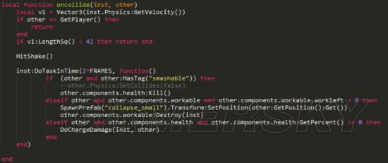 如果碰到的生物有 smashable 标签,则直接秒杀,如果是可以破坏的,就直接破坏,如碰到的生物血大于0则...