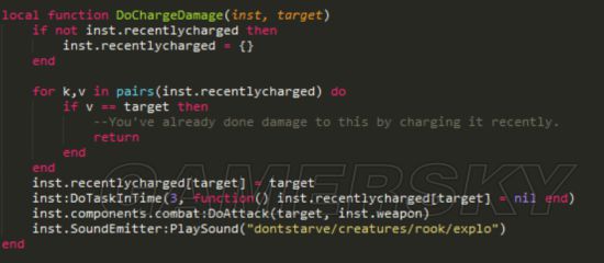 如果没有inst.recentlycharged ,就创建一个空的集,如果撞到的生物已经在这个集合里,就停止该函数