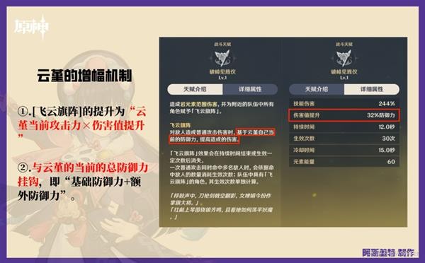 简单的说就是,如上图20,只有“云堇防御力×飞云旗阵伤害提升倍率”是和云堇有关,而其他的系数全都是和产生这一伤害的角色有关。会给人一种“寄生”的既视感。