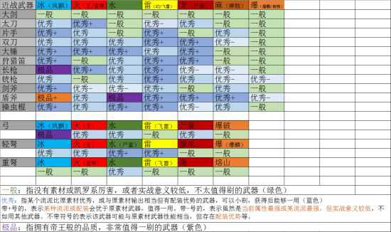 下面是本次王渣渣值得一刷个人推荐表,由于本次帝王武器的配装自由度相当高,难以简单说明某把武器厉害与否,这里的推荐仅代表个人意见,不代表官方数据,也不保证其绝对性,仅供大家参考。