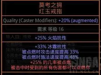 因为走暴击流,所以不用额外堆点燃几率,100火焰点伤正常75抗性下只有25点伤,自点燃伤害很低,只需要解决高频带来的hit