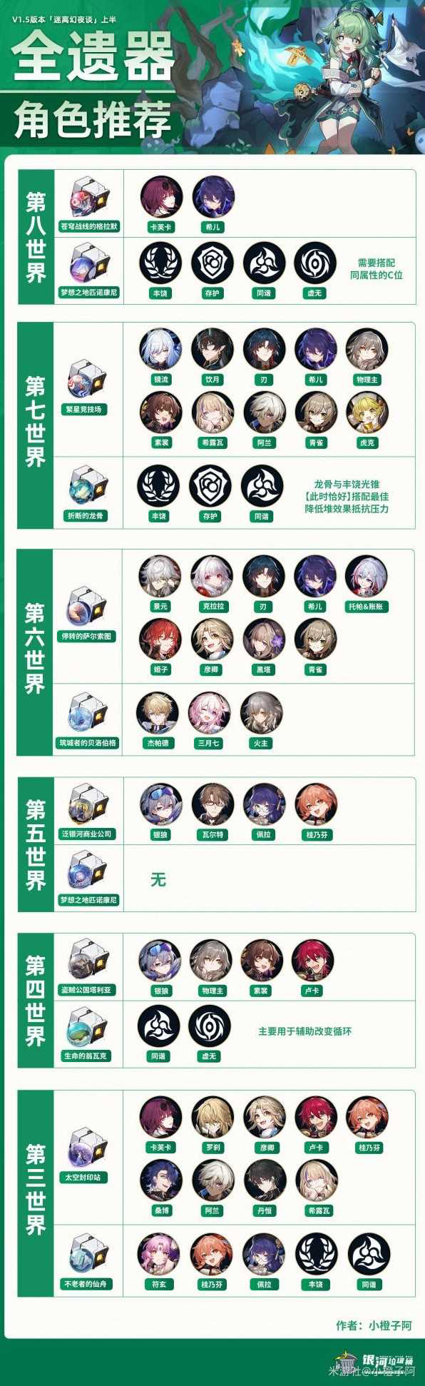 在《崩坏星穹铁道》1.5版本中,遗器是角色重要的加成,那么各个角色适合什么遗器?看下由攻略作者“小橙子啊”带来的《崩坏星穹铁道》全角色遗器推荐吧。