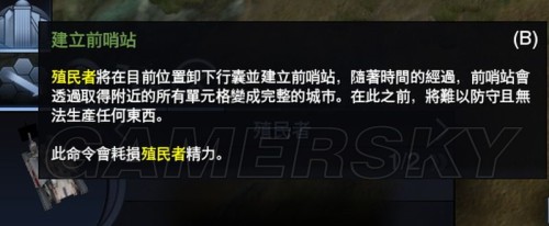 到达选定的目的地后,殖民者首先会建立前哨站,这个设施没有任何功能,需要数回合发展成真正的城市。