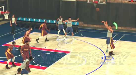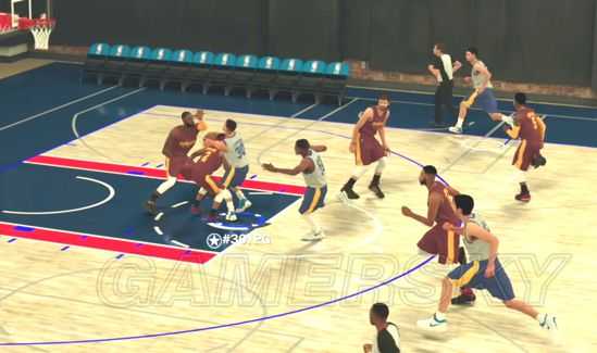 4.A.I协防提升:在上一代AI队友协防观念极差,通常都是在弱边的队友过来做协防,而造成外线的空档,或是眼睁睁看著对方切到篮下的监视器防守,AI队友在无球防守或是协防的强度都比上一代好些。