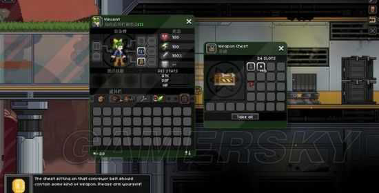 前面走廊的箱子里有裂剑和像素,这把剑是你最初的武器,不要错过。
