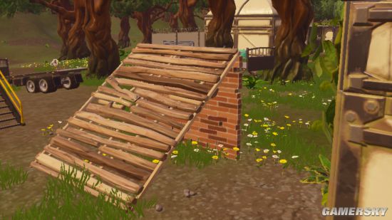 这样的搭板方式,虽然和前面一样,但前方竖板使用的木材板,还靠在围墙的旁边,而竖板前面就是围墙的出口,这样此处搭建这样板子的玩家很可能就是感觉内部有敌人,为了保守起见,这样以一个慢慢升高的方式,观察面前环境,就算发现敌人,我们依据城墙作为掩体,能实现最大程度的优势胜利,而围墙材料是钢铁,防御力很强,能抵挡很多的密集子弹射击,可以看到这名玩家性格谨慎,搭板熟练度很高。