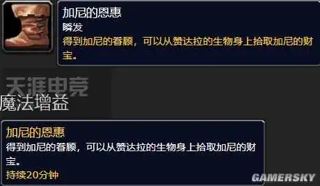 如果你耐心听完,会获得一个BUFF“加尼的恩惠”,说是可以拾取加尼的财宝。