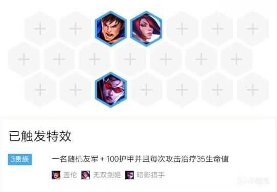 前期打工英雄:盖伦、剑姬、薇恩。3贵族可以使得一名随机友军加100护甲并且每次攻击治疗35点生命,打石头人的时候比较容易,而且贵族过渡到恶魔比较平滑,可以先加个韦鲁斯凑游侠,剑魔的装备可以先套给盖伦,剑魔要么得有装备,要么得有2星,否则不建议马上把3贵族替换掉。前期记得拿蜘蛛,等乌鸦来再用乌鸦;还可以拿卡萨丁,死歌来之前卡萨丁可以帮着先凑3法师。