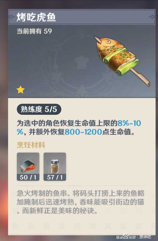 鱼肉*1 (采集,购买平均300¥) 胡椒*1(80¥)