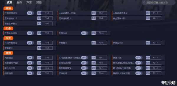 3.开启修改器各主初始项再使用各子修改项[无主初始项则不用开启][主初始项:如开启...修改]。