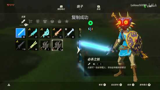 《塞尔达传说荒野之息》中的必杀之剑是英杰之诗DLC的任务道具,拥有对怪物一击必杀的能力,我们可以通过游戏漏洞来将此武器进行复制,只是没有一击必杀的效果。下面就为大家带来由“LelouchVVV”分享的《塞尔达传说荒野之息》必杀之剑复制视频教程,一起来看看吧。