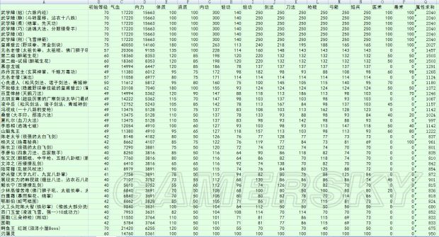 《河洛群侠传》中有很多BOSS,他们都有着自己的属性值,所谓知己知彼才能百战百胜,在了解了各个BOSS的属性之后才好有明确的角色培养思路。请看下面的《河洛群侠传》BOSS各项属性一览表,希望对大家有用。